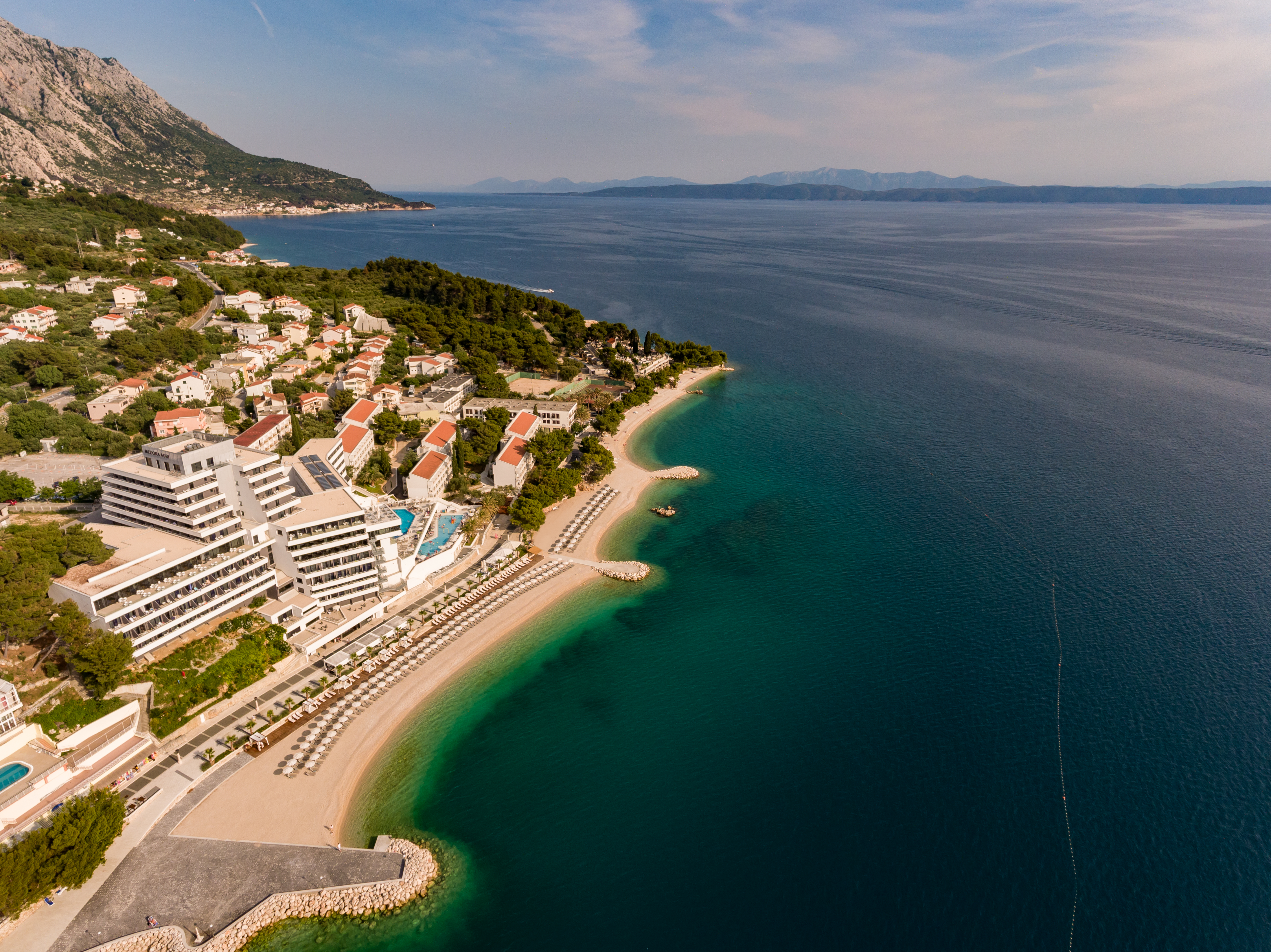 Полностью отремонтированный в 2016 году, 4-звездочный пляжный отель Medora Auri Family Beach Resort располагает открытыми бассейнами и велнес-центром с различными саунами, гидромассажной ванной, комнатой отдыха и разнообразными массажными и косметическими процедурами. В ресторане со шведским столом и открытой кухней подают блюда местной и интернациональной кухни. На всей территории отеля предоставляется бесплатный Wi-Fi. К услугам гостей номера с кондиционером и балконом с видом на Адриатическое море или гору Биоково. В номерах также есть телевизор с плоским экраном и спутниковыми каналами, мини-бар, а в собственной ванной комнате — душ или ванна и бесплатные туалетно-косметические принадлежности. В отеле есть несколько баров, в том числе пляжный бар, лобби-бар с панорамным видом на окрестности, а также коктейль-бар у бассейна. Гости могут поддерживать форму в фитнес-центре отеля с панорамным видом на Адриатическое море.