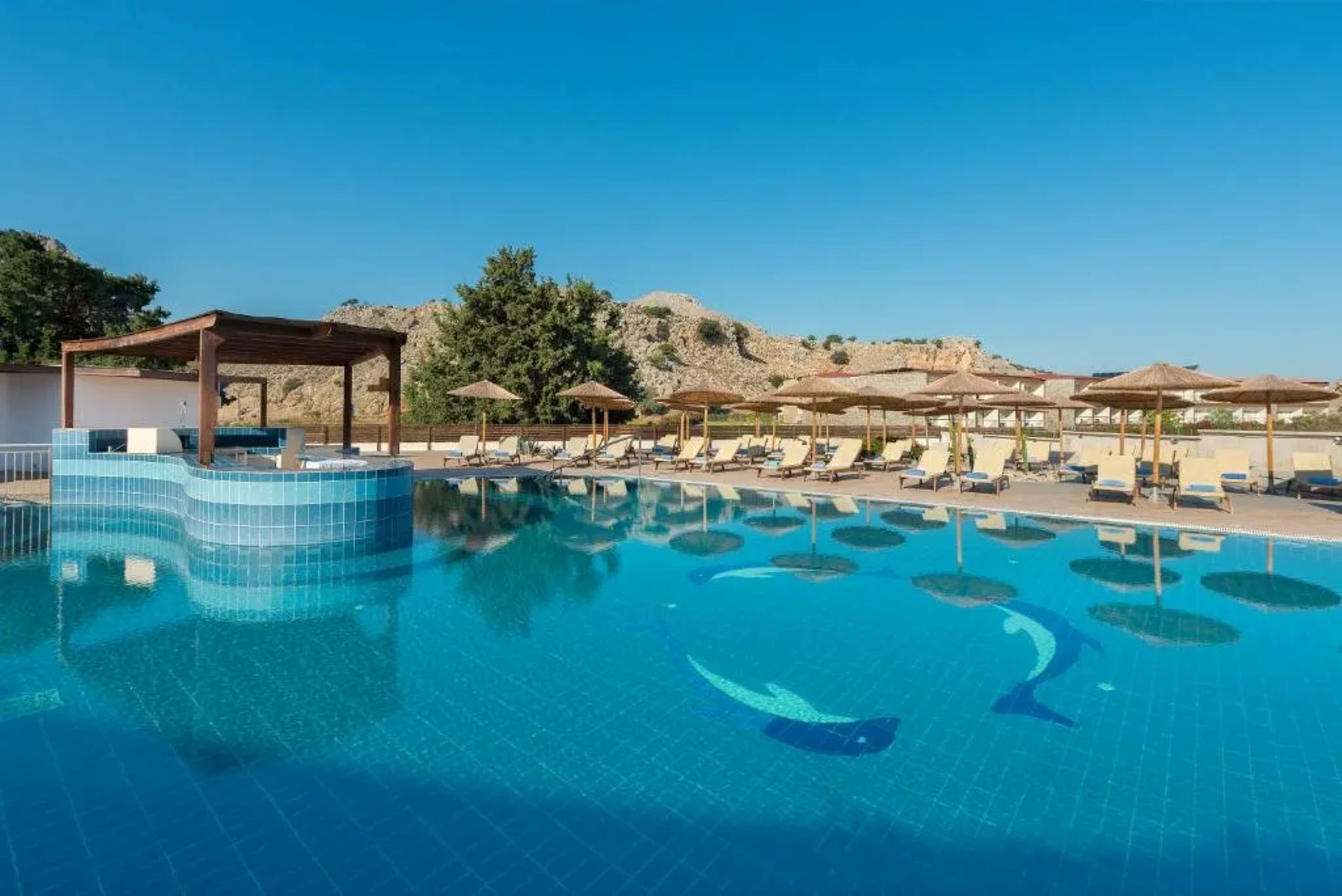 The Anavadia Hotel is located in the resort area of Kolymbia, 25 km from Rhodes Town and 20 km from Rhodes Diagoras Airport. Nestled in a tranquil setting with breathtaking views of St. Tsampika Mountain, the hotel offers the perfect escape for those seeking relaxation. Guests can enjoy lazy days by the pool or take advantage of the regular shuttle service to the beach. The hotel complex comprises three buildings: the main building with double, open-plan family, and superior family rooms; a dedicated relaxation area with additional double, triple, and family rooms; and the facilities building, housing the reception, mini-market, all-inclusive restaurant, and main bar.