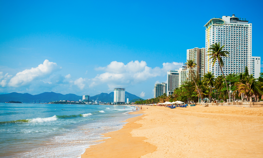 Вьетнамдық Нячангтың алтын жағажайларында.